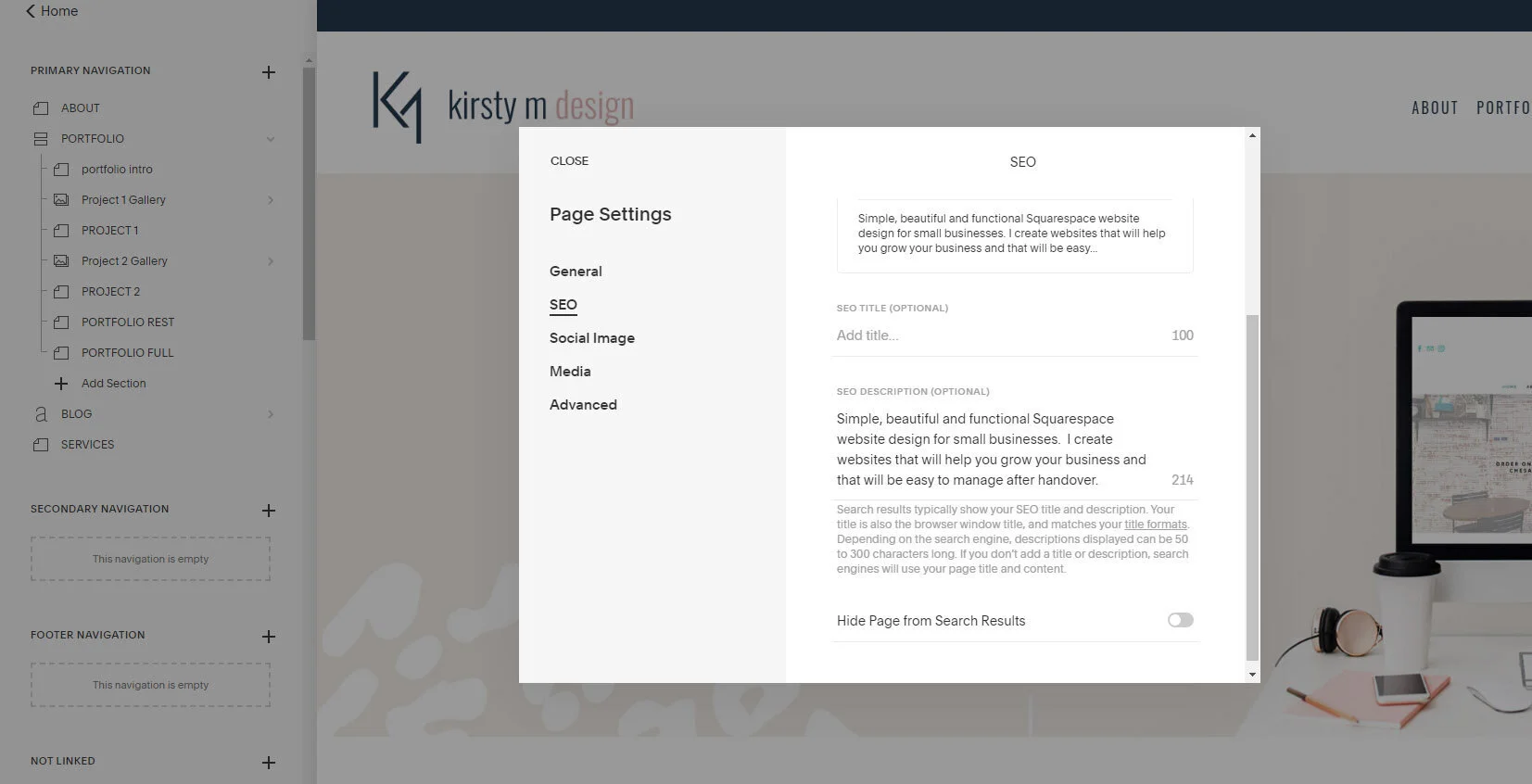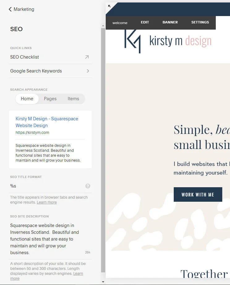 Squarespace has some great in-built SEO features, that will already be set up when your website is handed over. If anything changes in your website, you may want to change some of the descriptions that were used originally.