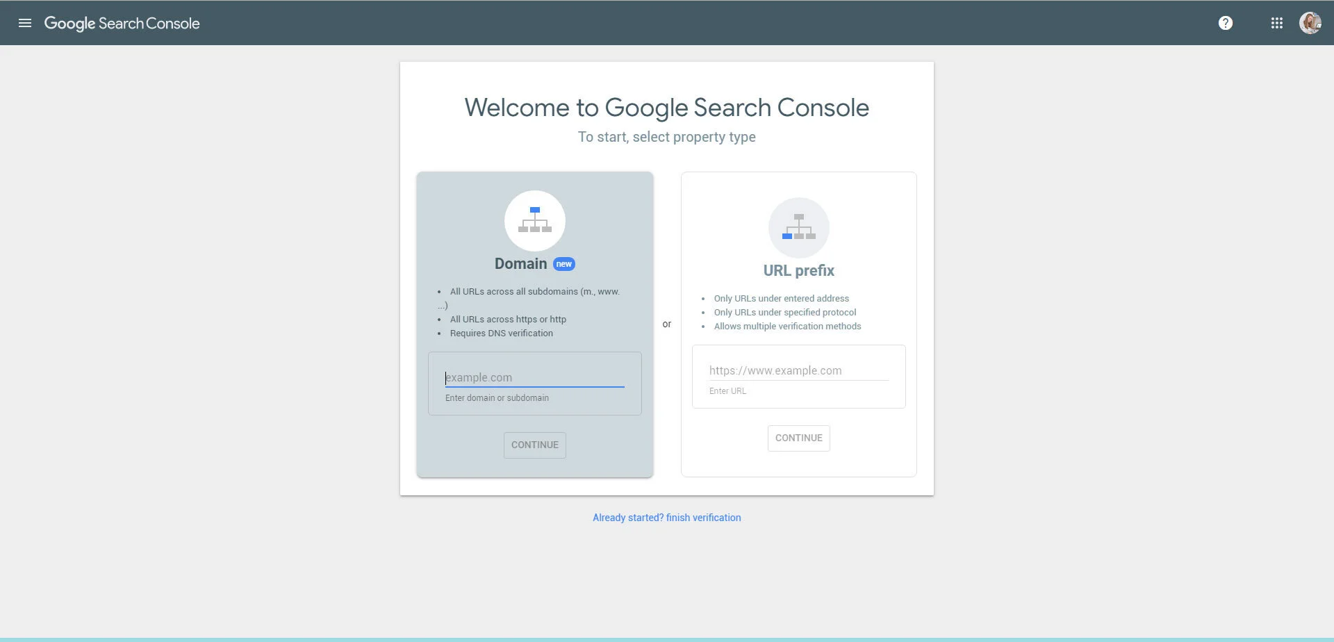 You will also be asked to verify your domain at the screen below. Enter your domain and follow the steps to verify.